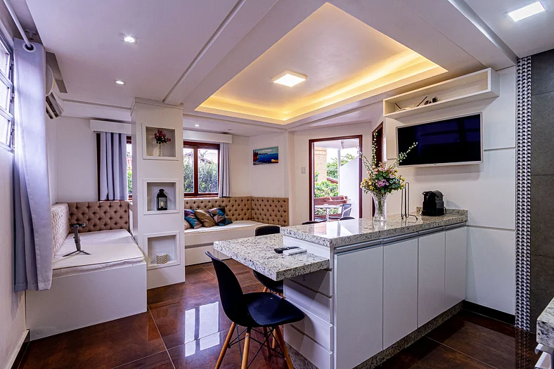 Local super agradável, tranquilo, ótimo para relaxar ao canto dos passarinhos. Possui utensílios de cozinha, tomadas são 220v, sugiro levar secador bivolt. Dá para ir a pé para a praia de Jurerê e ao Open Shopping. O Oliver foi super atencioso durante a estadia, obrigada por me receber bem!